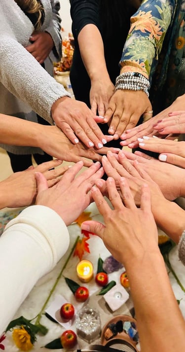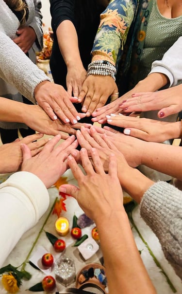 Group sessions honoring feminine energy ancestral wisdom, and chakras, guided by the moon's transformative energy.